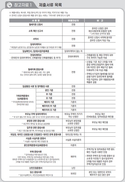 * 기준에 따라 추가로 요구되는 서류가 있습니다. 아래 제출서류 목록에서 해당되는 추가서류가 있는지 확인하시고 신청하시는데 도움되시길 바랍니다.